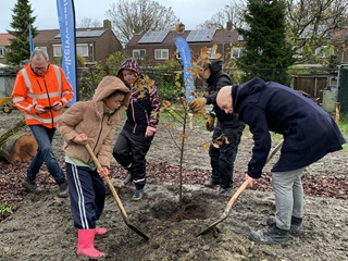 Eerste boom van een nieuw ‘klein bos’ op 19 november 2025 gepland